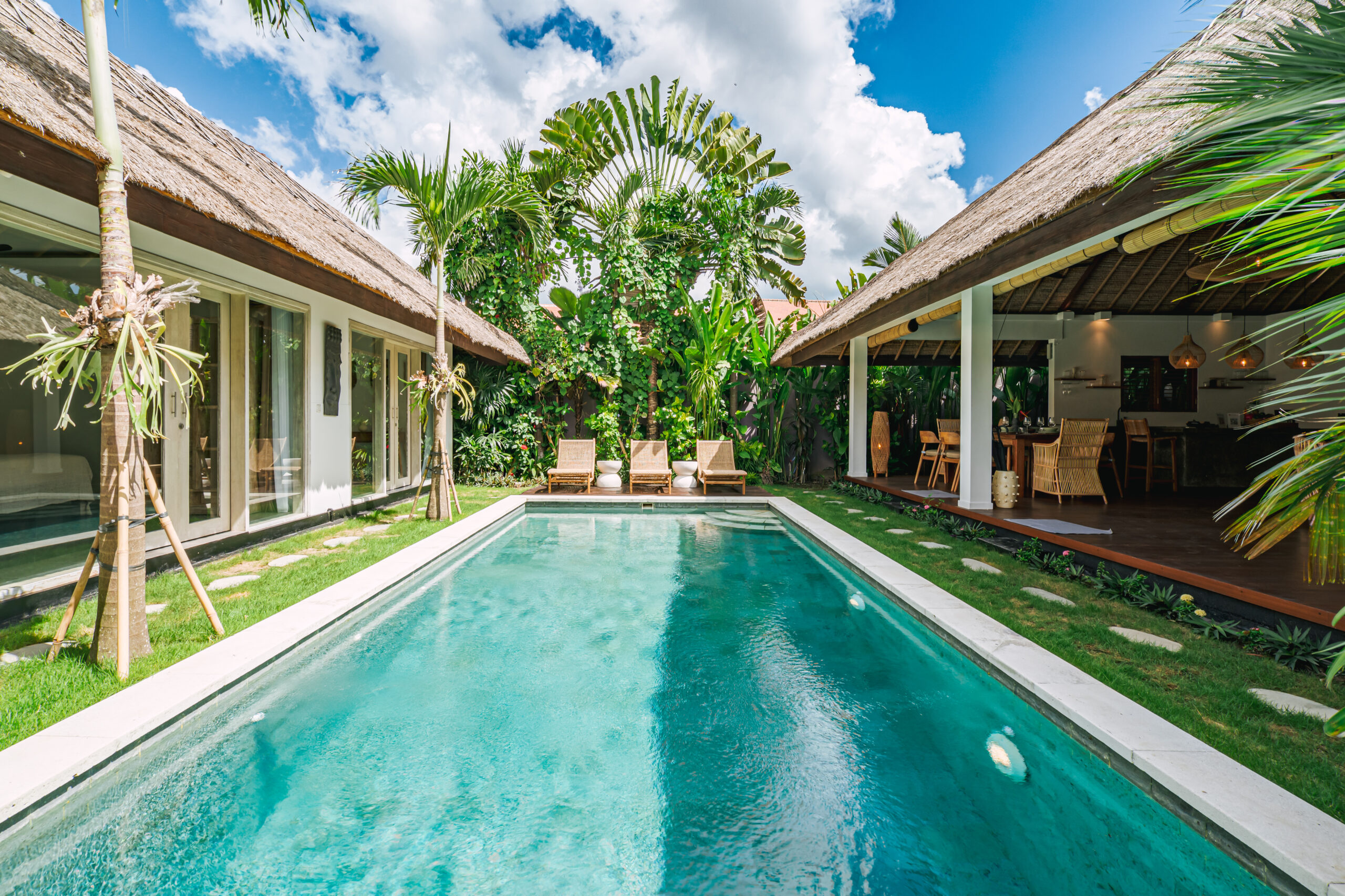 Piscine, espaces ouverts et douceur tropicale invitent à l’évasion.